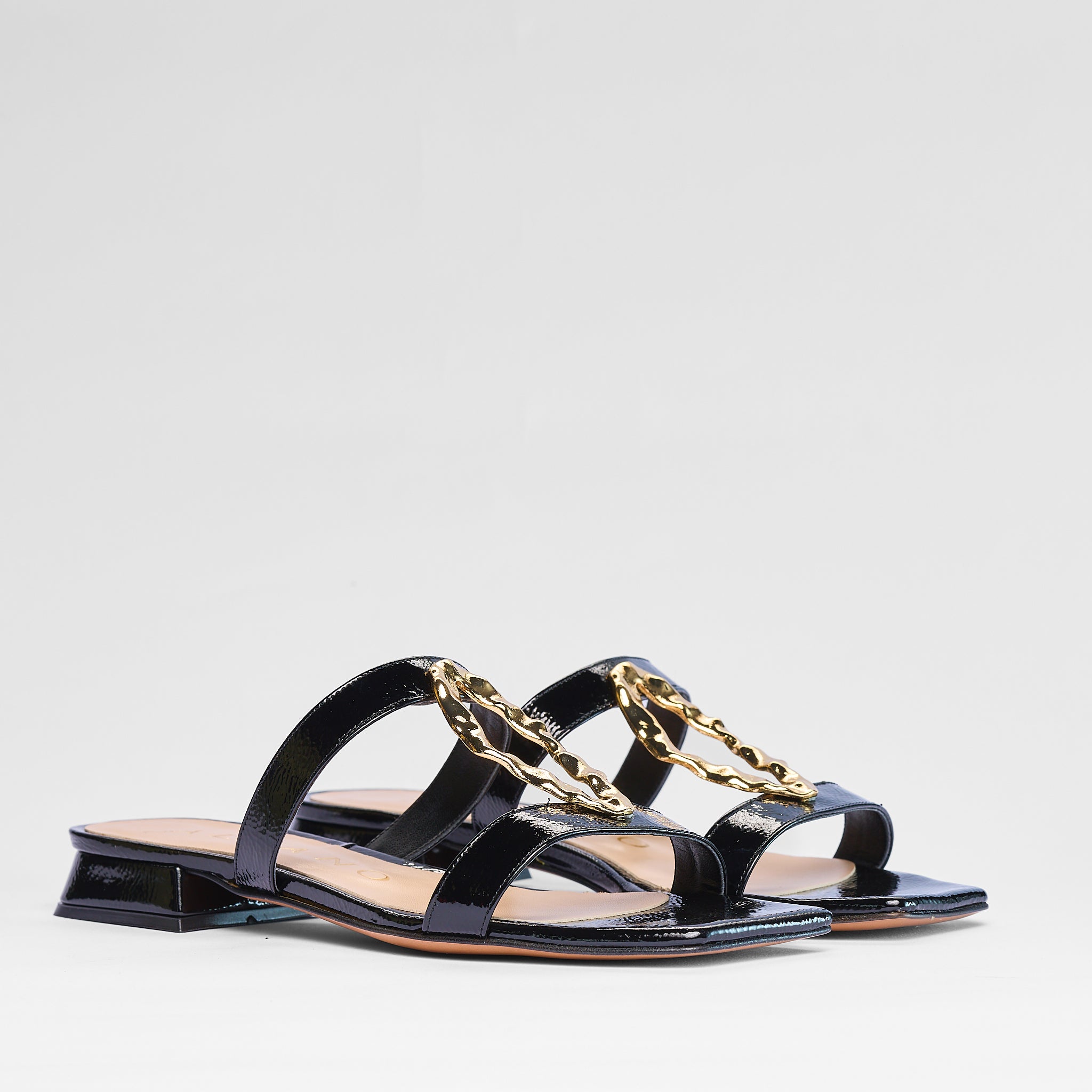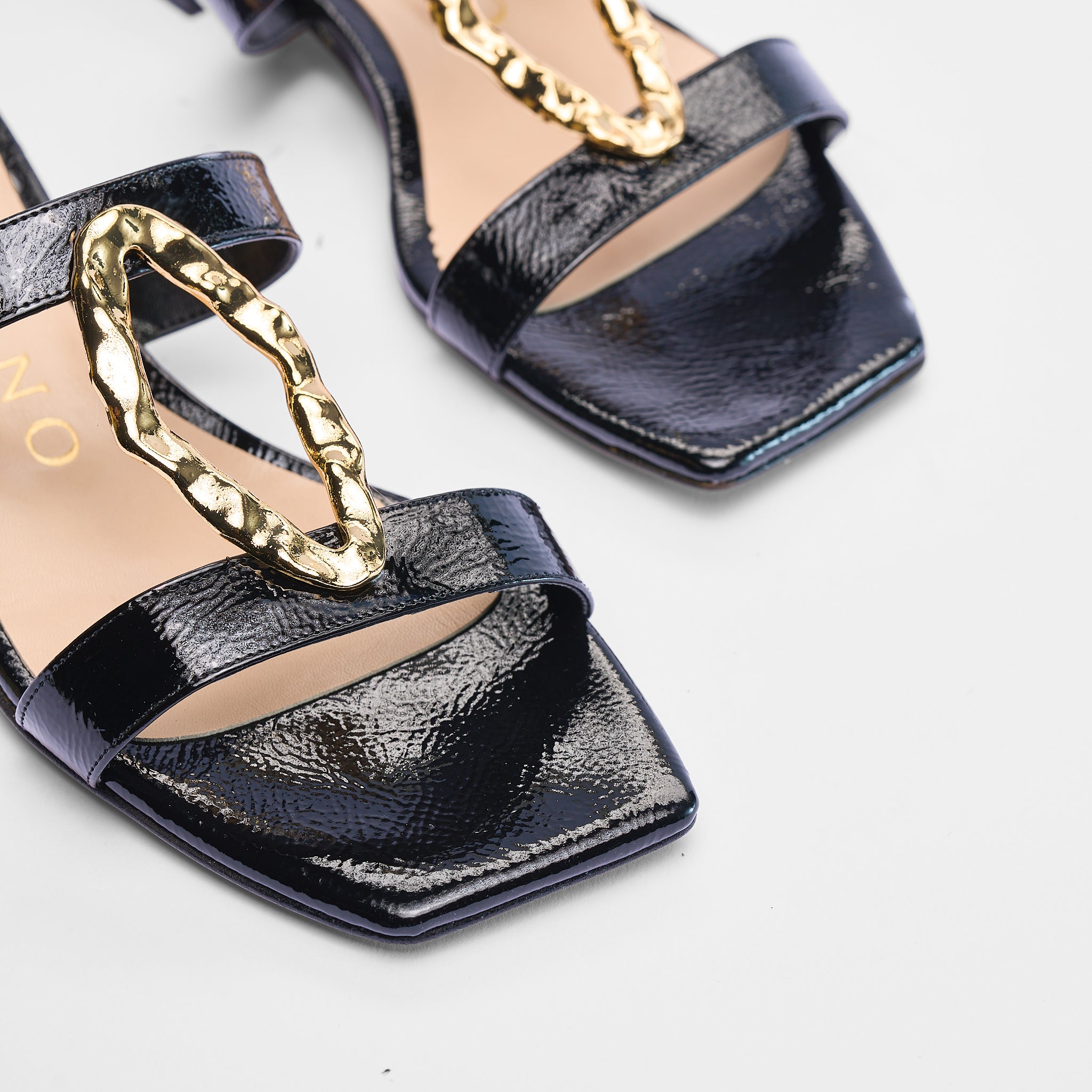 Sandalo Natalia è un sandalo elegante in naplak nero, pensato per valorizzare i look più raffinati con uno stile sofisticato. Realizzato 100% Made in Italy, slancia la silhouette con il tacco da 3 cm mentre gioiello oro frontale impreziosisce il design.